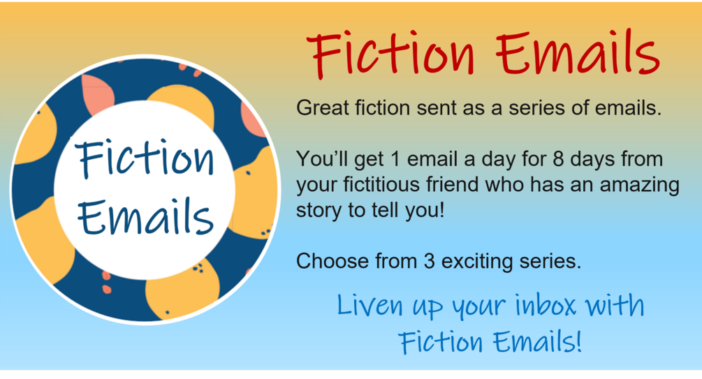 Each Fiction Emails series contains 8 daily emails from a fictitious friend that tell an action-packed, fun and exciting story filled with interesting characters. You'll get one email per day for 8 days that will make you excited to check your inbox!